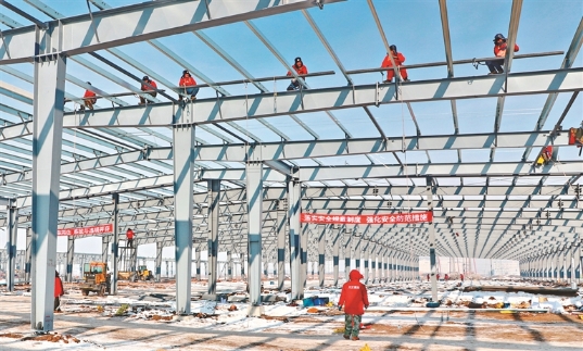 黑龍江日報訊(陳丹華 王木超 黑龍江日報全媒體記者孫昊)春節過后,依安經濟開發區內北緯47綠色有機食品產業項目就已復工建設,全力開展鋼構施工。