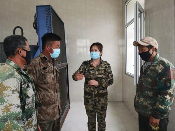 劉海玲(右二)指導企業員工學習飼養技術(圖片由受訪者提供)