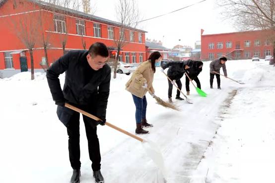 林業局黨政辦公室組織志愿者分區分片對林業局辦公樓前的積雪進行集中清理。黨旗在風雪中迎風飄揚,黨員干部奮力清理著積雪,組成了一幅為民服務、忠誠為民的生動畫面,也進一步展現了機關干部為職工辦實事的責任與擔當。
