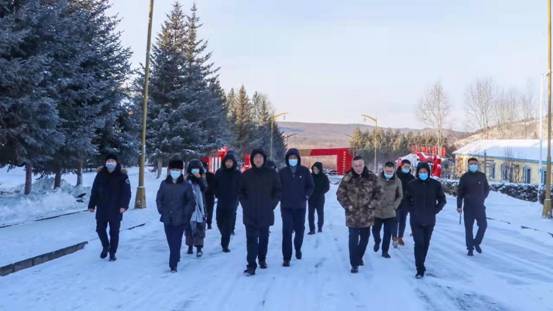 漠河林業局黨委書記石景巖,黨委副書記、局長宋玉林帶領林業局黨政班子深入前哨林場調研(李雪原 攝)
