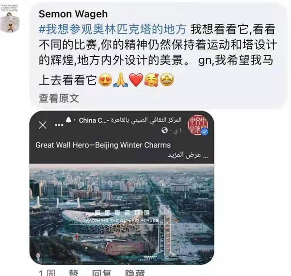2022年年初,根據埃及社會、文化特點和民眾喜好,開羅中國文化中心創新推出了2022“北方冰雪旅游海外推廣季”之“我最想去的地方”線上評選活動,邀請埃及各界友人參與話題互動,在中心主題帖文下寫出自己最想去的中國省份(或城市)及原因,曬出旅游目的地圖片并打上話題標簽等。活動一經推出,即受到埃及民眾的廣泛關注,網友們紛紛在中心臉書帖文下留言并轉發,評選自己“最想去的中國冰雪旅游勝地”,并熱情附上自己之前在華留學、訪問、旅游、生活的旅游體驗和文化閱歷,活動二次外溢效應明顯,二次傳播效果良好,旅游推廣和文化傳播的效果遠遠高于預期。活動期間,該活動