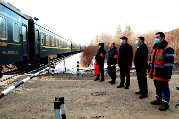 阿木爾林業局護路人員守護旅客列車安全通過(王力 攝)