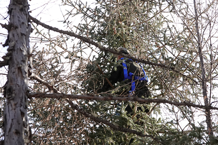 在收集區內,工作人員按照對比樹法,進行優樹選擇,并為每棵優樹進行了“戶口”登記,掛牌、GPS定位、拍照、生境及生長量記載。同時,他們還在選取的每棵優樹中上部位置采集優質穗條30條,用于嫁接來完成林木種質資源異地無性系收集。