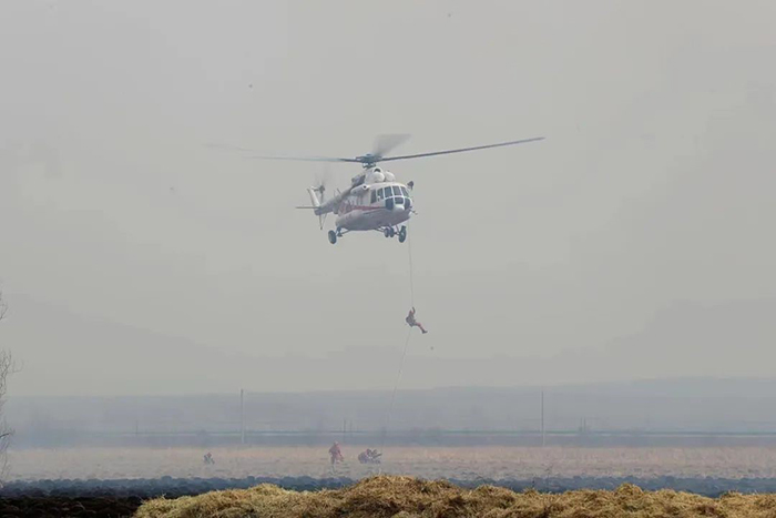 上午11時許,演練指令正式下達(dá),信號彈騰空而起,一場以管護(hù)區(qū)內(nèi)某重點(diǎn)林區(qū)發(fā)生火災(zāi)為演練背景的撲火戰(zhàn)斗全面打響。隨著一道道命令的下達(dá),各參演單位指戰(zhàn)員迅速行動,按照林火監(jiān)測和火情報(bào)告、接警處置和啟動預(yù)案、組織兵力投送、組織指揮滅火行動等工作流程,有序組織開展演練。演練中,撲火隊(duì)伍結(jié)合火場態(tài)勢,科學(xué)選用兩翼對進(jìn)、鉗形夾擊,多點(diǎn)突破、分段圍殲等戰(zhàn)法,重點(diǎn)演練了無人機(jī)滅火、直升機(jī)空中作業(yè)、常規(guī)滅火、大型裝備滅火等內(nèi)容。來自市森林消防支隊(duì)、應(yīng)急航空救援伊春站、市應(yīng)急救援支隊(duì)、市消防救援支隊(duì),烏伊嶺、湯旺河、新青、紅星、五營、上甘嶺、友好、翠巒、美溪林業(yè)局公司撲滅火大隊(duì),新青林業(yè)局公司紅林、湯林林場分公司快速撲滅火小隊(duì)和民兵預(yù)備隊(duì)等單位,共計(jì)800余人參加演練。
