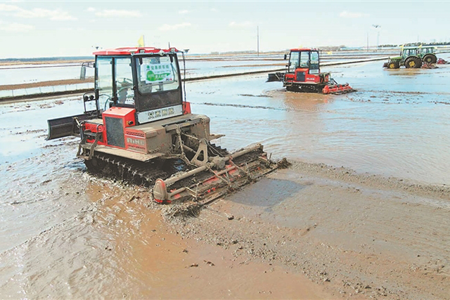 無人農機在水田整地作業。 馬文竹 王帥攝