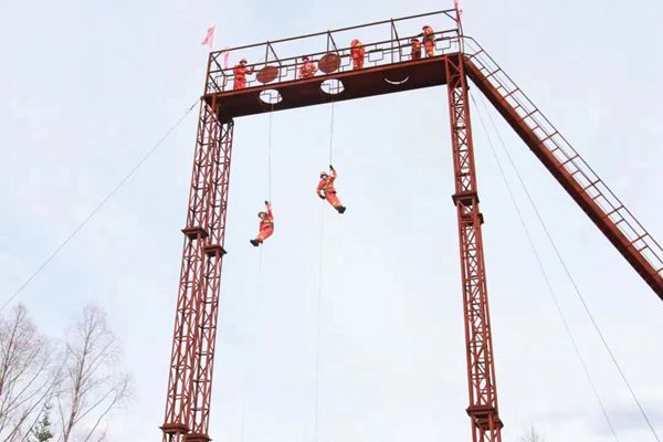 訓練過程中,中隊長馬振濤對高空索滑需要注意的事項和方法方式進行了詳細講解,并將在訓練過程中容易出現的錯誤動作,結合實際訓練做了現場演示。指導參訓人員克服恐懼心理,嚴格按照理論輔導、教學大綱、索滑降訓練的步驟進行科學訓練。堅持由簡到繁、由易到難、循序漸進的原則,對安全背帶穿戴、索控器具裝卸繩、不同高度滑降、遇到突發問題快速處理等內容進行了系統訓練。一次次繩結、一次次索滑降、一次次健步如飛……千錘百煉中隊員們逐步熟練了滑降的操作流程,克服了恐懼心理,取得了明顯成效。