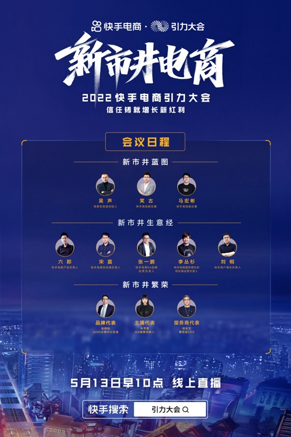 2022年快手電商引力大會(huì)于5月13日上午10點(diǎn)在北京舉行。2022快手電商引力大會(huì)議程包括新市井藍(lán)圖、新市井生意經(jīng)、新市井繁榮三大篇章。