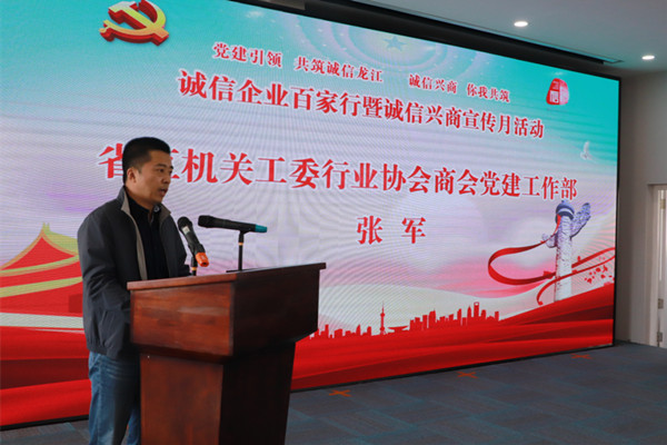 活動現(xiàn)場,省直機關(guān)工委行業(yè)協(xié)會商會黨建工作部張軍為本次活動致辭。他表示,此次活動以“黨建引領(lǐng)、共筑誠信龍江”為主題,是推動黨建工作與行業(yè)協(xié)會商會業(yè)務工作融合發(fā)展的具體舉措,希望省誠促會始終高舉黨的旗幟,堅定正確的政治方向,發(fā)揮誠信興商聯(lián)盟平臺作用,廣泛聯(lián)合龍江誠信社會組織,建設(shè)龍江誠信高地,打造誠信示范群體,形成誠信集聚效應,共興誠信之風、樹立誠信典范、弘揚誠信力量,樹立龍江社會、龍江企業(yè)誠信文化典型,打造我省“誠信龍江”閃亮名片。