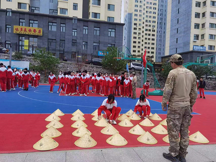 5月30日早8:00,初一學年100名學生分成四組開始了為期一天的拓展訓練。拓展訓練前,教練首先告訴同學們:軍人以服從紀律為天職,作為中國人應懷著一顆感恩之心回報社會、建設祖國。