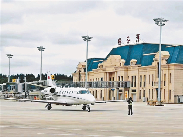 校驗飛機平穩降落在綏芬河機場。圖片由省機場集團提供