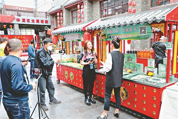 東興城商業步行街網絡直播促消費活動。 宋洋攝