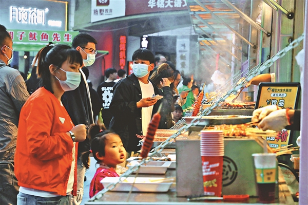 “開放夜市對于我來說能解決一部分經濟壓力,白天上班不耽誤。感謝政府搭建這個平臺,真是利民的好事。”一位經營火爆大魷魚的老板說。記者看到,在燈光夜市,燒烤、水吧、海鮮等特色小吃是應有盡有,市民邊吃邊看,邊走邊吃,夜市開業當天就已經有20余個商戶入駐。