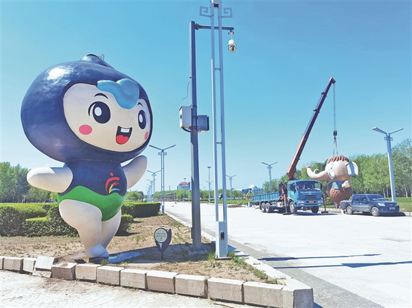 據中國電力建設市政集團有限公司現場技術總負責人劉銘介紹,為迎接省旅發大會召開,時代廣場改造期間專門定做、安裝了10個吉祥物做景觀小品,大的5.5米高,小的3.5米高。