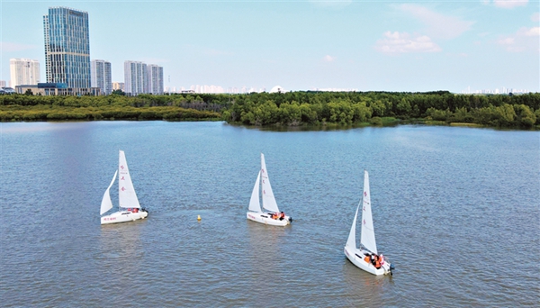 連日來,哈爾濱市職工帆船帆板運(yùn)動協(xié)會的40余名隊(duì)員,在一湖三島濕地的訓(xùn)練基地中進(jìn)行新帆船的駕乘訓(xùn)練,為相關(guān)帆船比賽做準(zhǔn)備。黑龍江日報(bào)記者 張澍攝