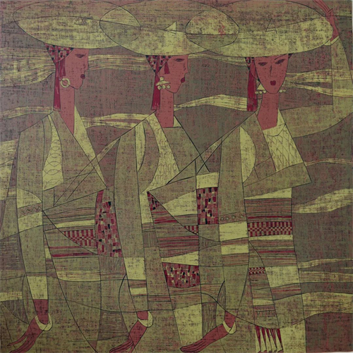 踏歌圖 套色木刻(絕版) 45×45cm 1992年