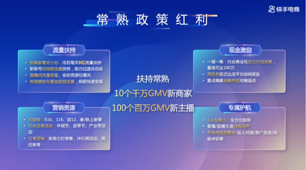 在流量扶持方面,新手常熟商家可享受“青云計劃”每天8億流量扶持,還有短視頻流量扶持、直播間流量保量、全站資源位曝光、短視頻掛車疊加獎勵等;在營銷資源方面,快手電商打造每月高頻的營銷場景,包括大促、節日、行業品類活動、寵粉節等,并為常熟商家提供活動補貼,激活品牌動銷;此外還有最高價值100萬的商業化對投政策、周任務躍遷達成平臺加碼獎勵等現金激勵,以及1V1專屬小二全方位指導等專屬護航。