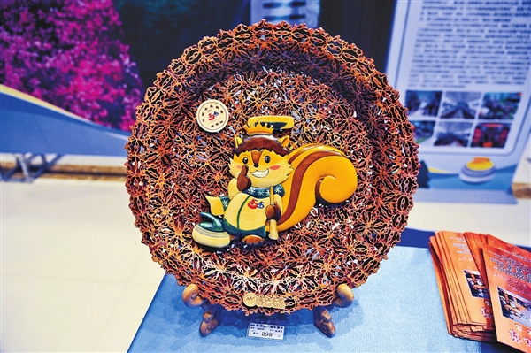 展覽現場,北沉香、核桃作品,賽事吉祥物掛件、木拼畫和版畫等,憑借其精湛的技藝、貼近生活和賽事的文創產品,吸引了眾多參觀者的眼球。“這次我們展示了具有小興安嶺特色的木藝品和冰壺、吉祥作品,通過直觀形象的展示,讓更多人了解林區元素的文創產品和技藝,宣傳和弘揚伊春的林區文化,讓我市的木制工藝品進一步發揚光大。”美江木藝有限責任公司總經理王美江介紹說。