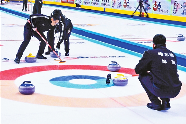 圖為男子冰壺哈爾濱隊比賽現場。(胡錫韋/攝)