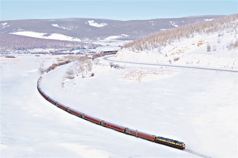 旅游專列疾馳在冰雪世界。