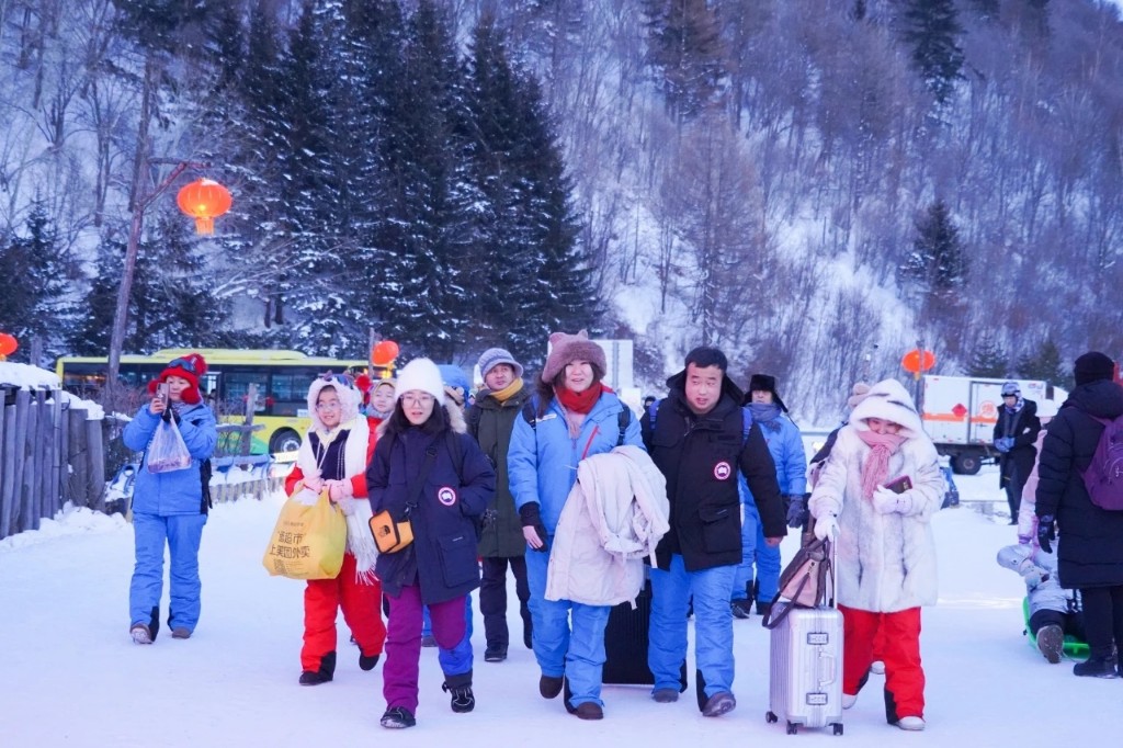 其中,雪鄉單日入園游客最高近1.5萬人次,7天入園人數逾7萬人次,走在雪韻大街上,烤地瓜、烤土豆、鐵鍋燉的香氣撲鼻而來,花車巡游、扭大秧歌、焰火晚會等各類互動式體驗活動讓景區熱鬧非凡,吸引四面八方的游客前來。
