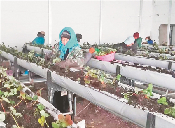 “早上7點去,下午4點多就收工回來了,離家近,每天能賺150元,挺好的。”張金香說。走進產業園的草莓溫室大棚,如張金香一般來自谷大村的女工們正認真地進行著手中的工作。移栽、覆膜、澆水……14萬株蘊含著期待與希望的草莓秧苗正在茁壯成長。