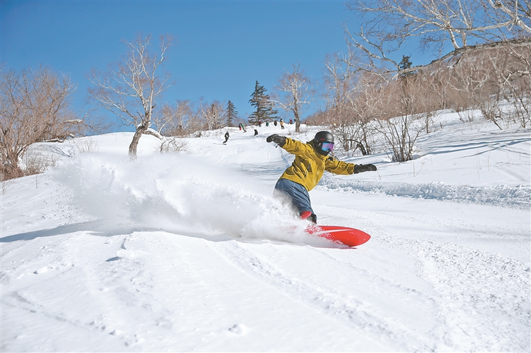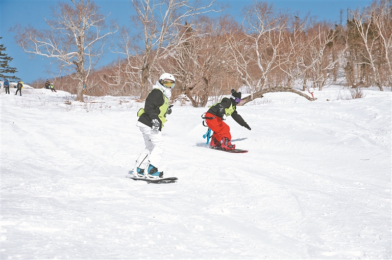 隨著一聲令下,來(lái)自哈爾濱的白華、杭州的張寒麒兩名女子單板滑雪選手一躍而起,風(fēng)馳電掣沖向終點(diǎn)?!拔曳浅O矚g雪鄉(xiāng),尤其是有粉雪的時(shí)候特別美,我希望每年能來(lái)三次,更希望能夠參加下一次野雪追逐賽。”第二次來(lái)到雪鄉(xiāng)滑雪的杭州女孩張寒麒深深地被雪鄉(xiāng)吸引。