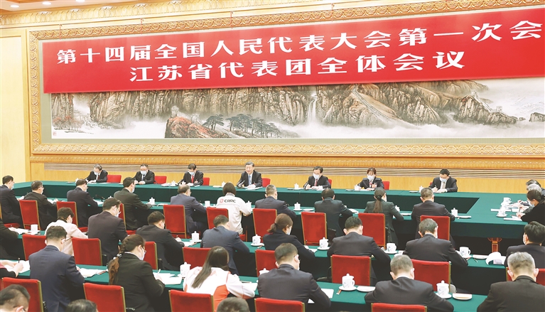 3月5日,中共中央總書記、國家主席、中央軍委主席習近平參加他所在的十四屆全國人大一次會議江蘇代表團審議。