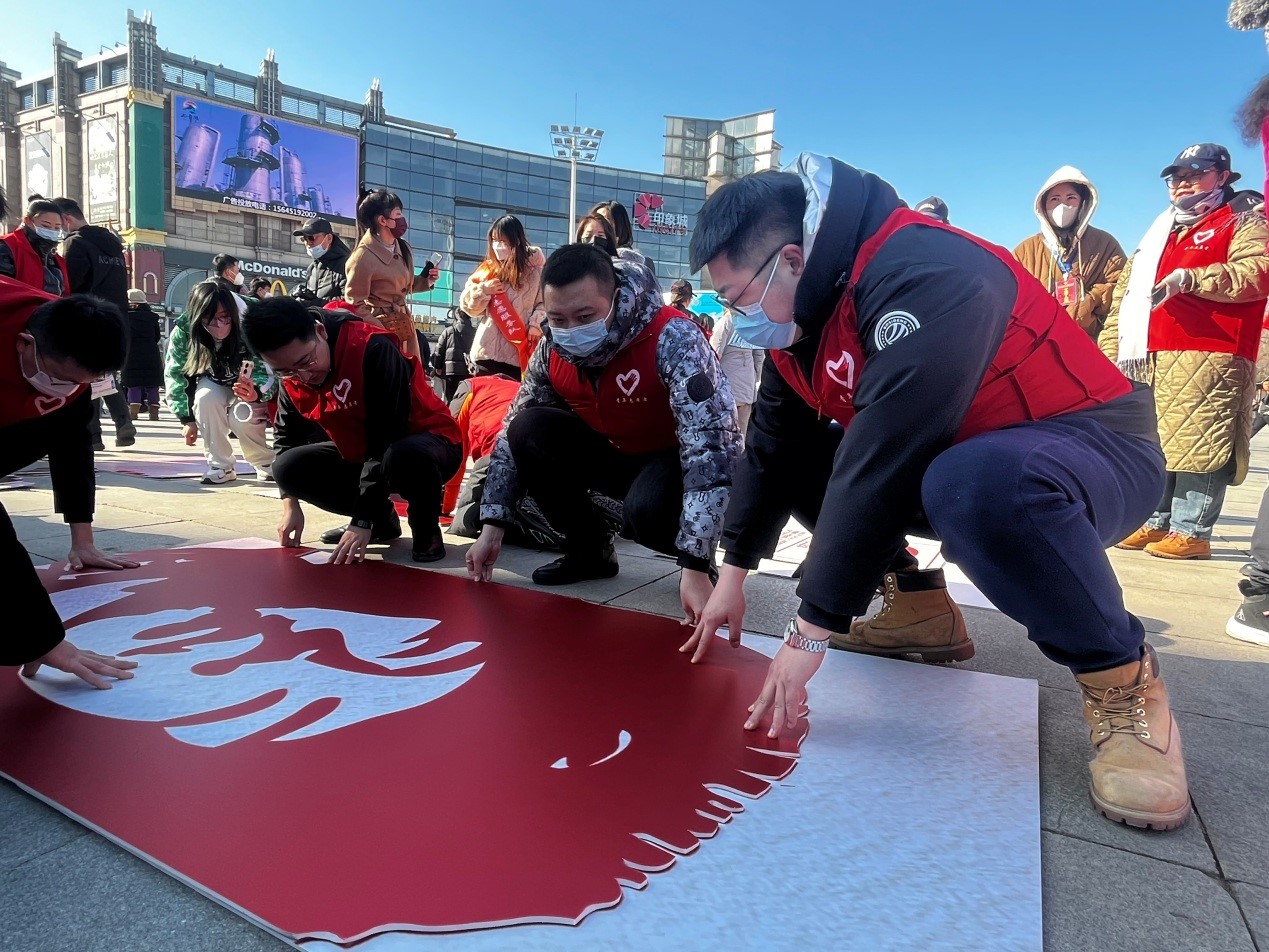 在會場的中間,一幅長3.6米,寬3.6米的學習雷鋒主題拼畫,在黨員干部、青年志愿者和青少年的齊心協力下呈現出來,展現了志愿者以實際行動向雷鋒同志學習,引導青少年積極向上,努力奮斗的精神風貌。