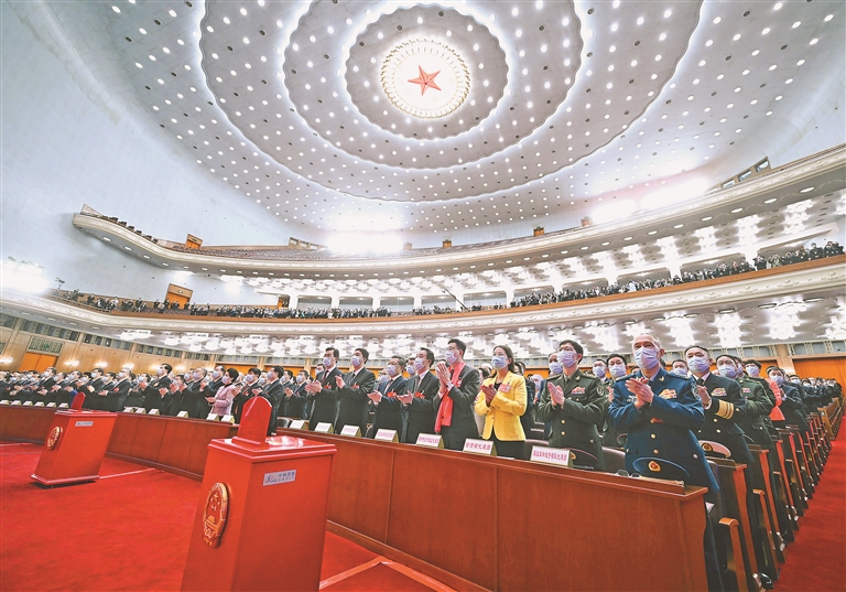 十四屆全國人大一次會議在北京人民大會堂舉行第三次全體會議