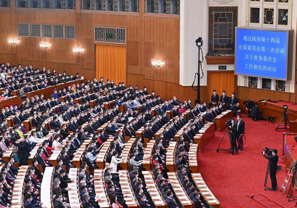 3月11日,中國人民政治協商會議第十四屆全國委員會第一次會議在北京人民大會堂舉行閉幕會。