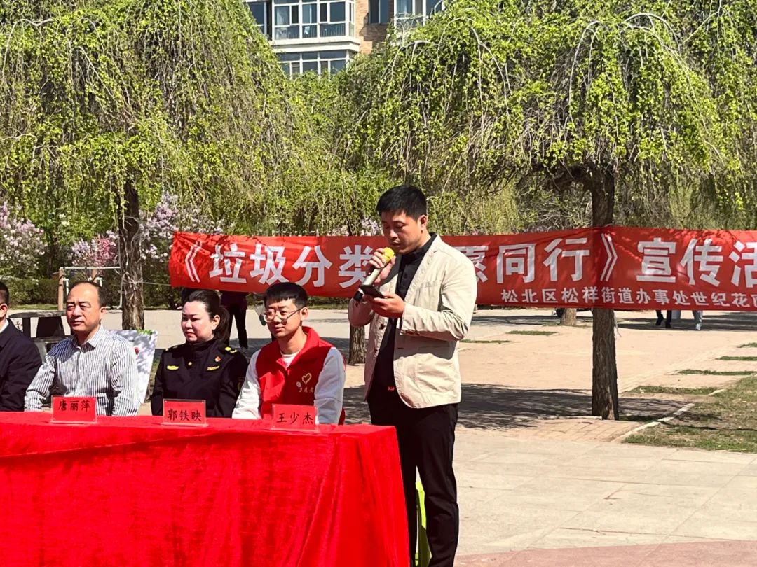 活動(dòng)開(kāi)場(chǎng),松北區(qū)松祥街道辦事處世紀(jì)花園社區(qū)王少杰書記作了表態(tài)發(fā)言,作為垃圾分類監(jiān)督員、推廣員,要履行好自己的職責(zé),做好垃圾分類工作。通過(guò)公益活動(dòng)宣傳,要把垃圾分好類,為環(huán)境保護(hù)做出自己的貢獻(xiàn)。同時(shí)也呼吁各位居民朋友自覺(jué)分類投放垃圾,共同為社區(qū)的環(huán)境貢獻(xiàn)自己的一份力量。
