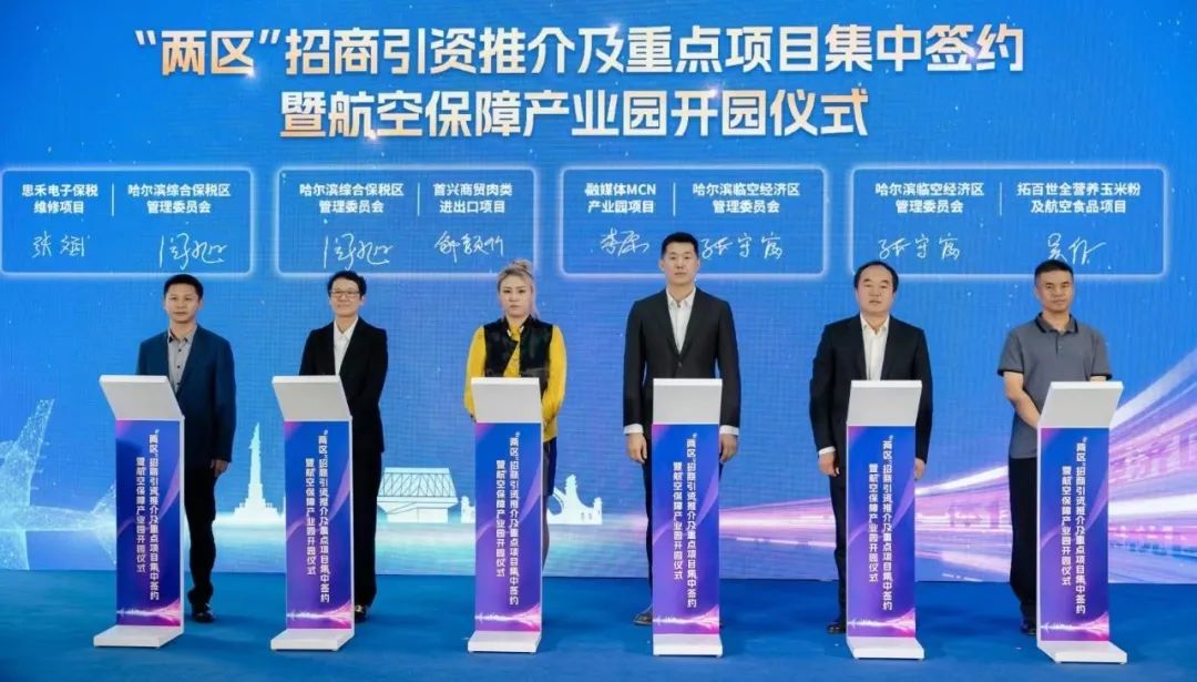 “兩區”管委會領導分別對哈爾濱綜合保稅區與哈爾濱臨空經濟區重點園區、營商環境、產業政策等特色優勢作招商推介,誠邀五湖四海的客商朋友來“兩區”投資興業、共商發展,吸引和促進優質資源和高端要素匯聚“兩區”。哈爾濱臨空經濟區航空保障產業園在全體來賓的見證下正式啟動,該園總建筑面積12萬平方米,總投資5.6億元,重點發展航空總部經濟、航空制造產業、航空物流產業、臨空制造產業以及航空服務、航空食品等產業,致力打造為哈爾濱臨空經濟區發展現代制造業的新名片,成為國內知名的航空保障產業集群。
