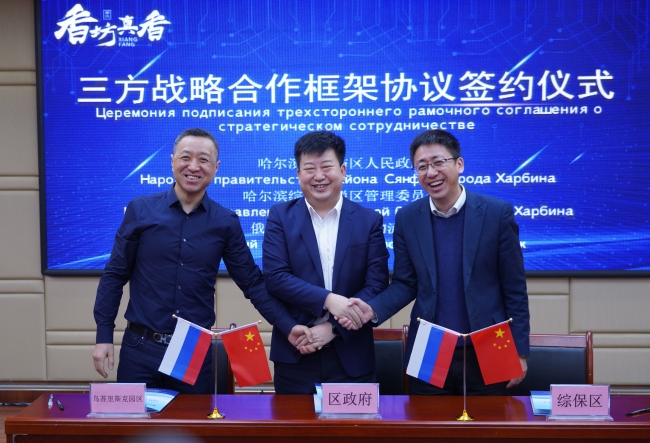 聯合開展產業招商,共享產業優惠政策;創新合作,增強產業聯動,形成產業協同。12月14日,哈爾濱市香坊區政府與哈爾濱綜合保稅區、俄羅斯烏蘇里國際物流園區簽署戰略合作框架協議。