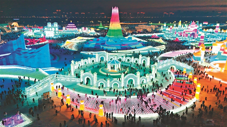 “震撼,刺激!”采訪過程中,不少游客這樣總結冰雪大世界之行。因為美景而感到震撼,乘坐521米超長大滑梯體驗到風馳電掣的刺激……這個冰雪季,以“龍騰冰雪 逐夢亞冬”為主題的第二十五屆哈爾濱冰雪大世界為八方游客準備了一場集沉浸體驗、旅游觀光、賞冰樂雪為一體的冰雪盛宴,這必定是一段令人難忘的冰雪旅程。
