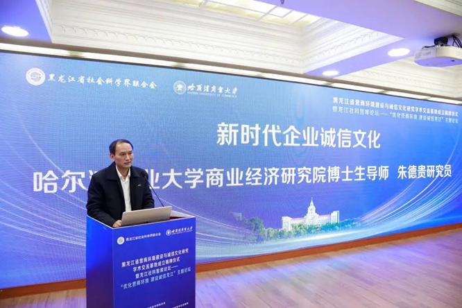 哈爾濱商業大學商業經濟研究院朱德貴研究員以《新時代企業誠信文化》為題作主旨報告。