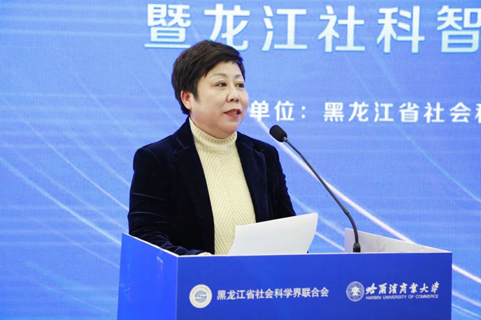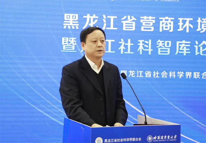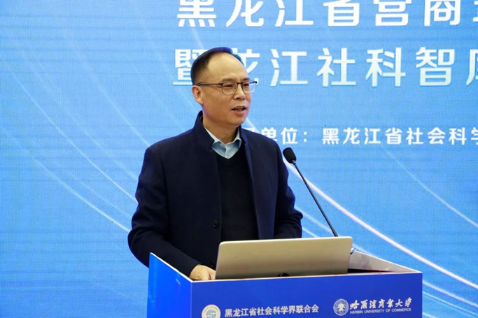 哈爾濱商業大學經濟學院院長韓平主持龍江社科智庫論壇——“優化營商環境 建設誠信龍江”主題論壇。