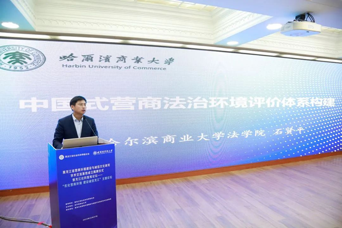 哈爾濱商業大學法學院副院長石賢平教授以《中國式營商法治環境評價體系構建》為題作主旨報告。
