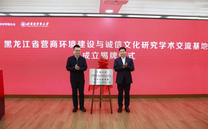 黑龍江省社會科學界聯合會黨組成員、副主席王宏宇與孫先民共同為“黑龍江省營商環境建設與誠信文化研究學術交流基地”揭牌。