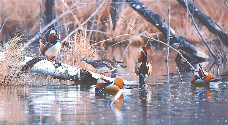 近日,隨著黑龍江開(kāi)江流冰,第一批40多只鴛鴦從黑龍江邊遷徙到“鴛鴦谷”。一時(shí)間,這里呈現(xiàn)一幅春天“冰雪消融,鴛鴦戲水”的美景圖。鴛鴦谷位于黑龍江南岸、鴨蛋河?xùn)|岸、鶴崗市蘿北縣區(qū)域內(nèi)的延軍農(nóng)場(chǎng)15連西側(cè)。這里山林茂密、泡沼相連,是許多候鳥(niǎo),特別是鴛鴦的家。本報(bào)記者 吳樹(shù)江攝