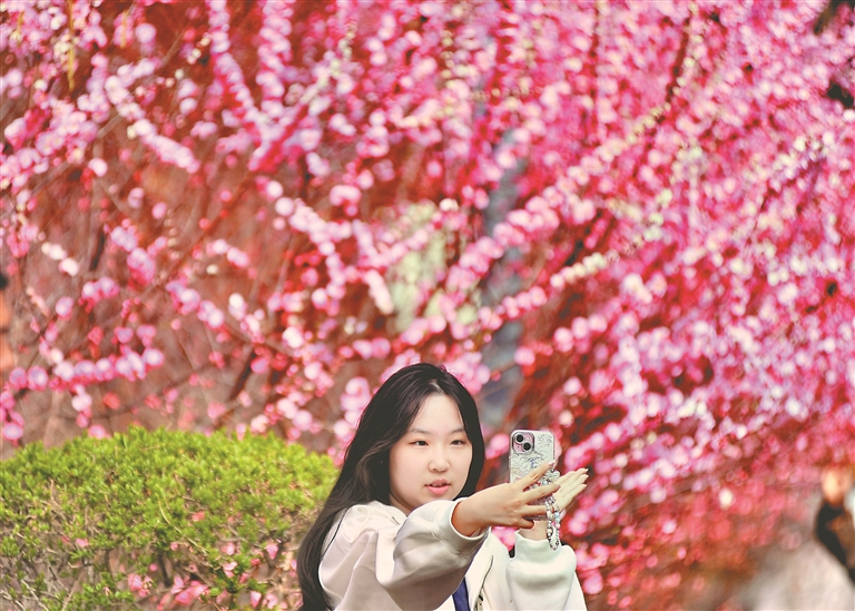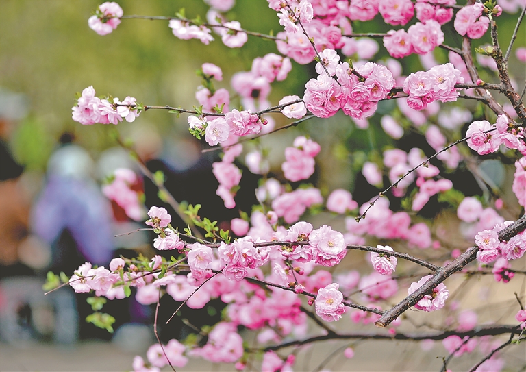 近期,哈爾濱市街頭、廣場、公園里種植的榆葉梅陸續開花,有粉色的,有紅色的,一團團一簇簇,綻放的花朵吸引人們駐足觀賞、拍照。