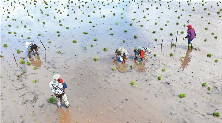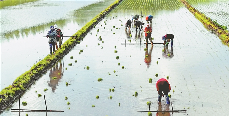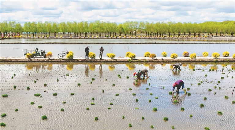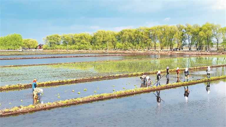 立夏過后,黑土地正式迎來水稻移栽好時(shí)節(jié),一排排秧苗整齊地挺立在田間,為稻田鋪上了“新綠”。在綏化市北林區(qū)國家級水田示范區(qū)國家級區(qū)域性良種繁育基地,這里正采用人工插秧的方式,繁育寒地香米品種。今年,北林區(qū)水稻預(yù)計(jì)種植面積108萬畝,寒地香米系列品種覆蓋95%以上。