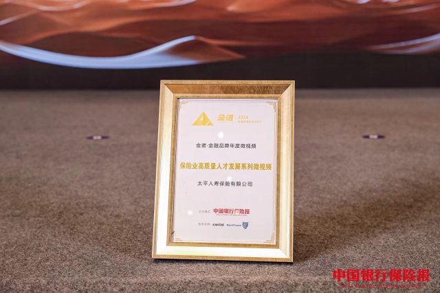 5月9日,由《中國銀行保險報》主辦的第八屆金諾·金融品牌影響力論壇在湖北荊州舉辦,同期公布了“2024金諾·中國金融品牌影響力傳播案例征集活動”結果,太平人壽原創制作的“保險業高質量人才發展系列”視頻入選,獲評“2024金諾·金融品牌年度微視頻”。