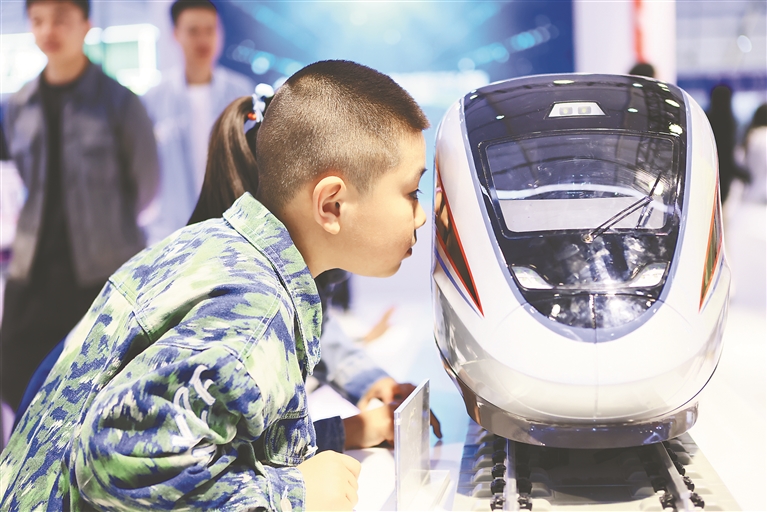 第三十三屆哈洽會成為了孩子們長見識的窗口。在中國中車的展臺前,孩子們的目光被一組組精美的列車模型所吸引。“我從來沒有見過這么多不同種類的列車模型”“我最喜歡的是和諧號,它看起來科技感十足。”能同時看到動車、和諧號還有地鐵并排擺在一起,孩子們興奮不已。