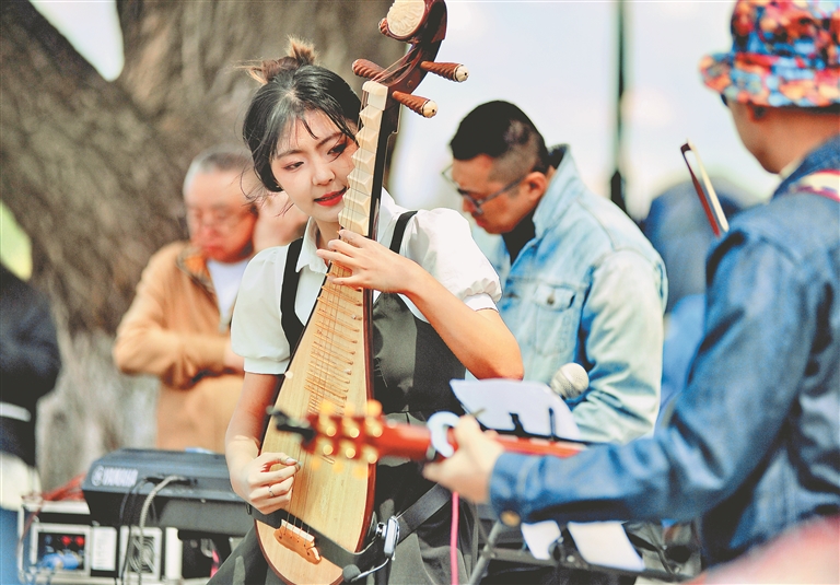 進入夏季,每天都有眾多音樂愛好者來到江邊演出。他們自備音箱,自彈自唱,為“音樂之城”哈爾濱“代言”,成為江邊一道獨特的風景。