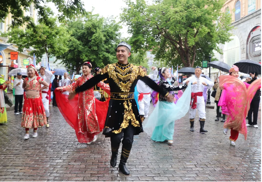 活動中,“中央大街巡游會場”與“人民廣場百人共舞分會場”相繼啟動,一系列融合傳統文化與現代元素的表演精彩紛呈。