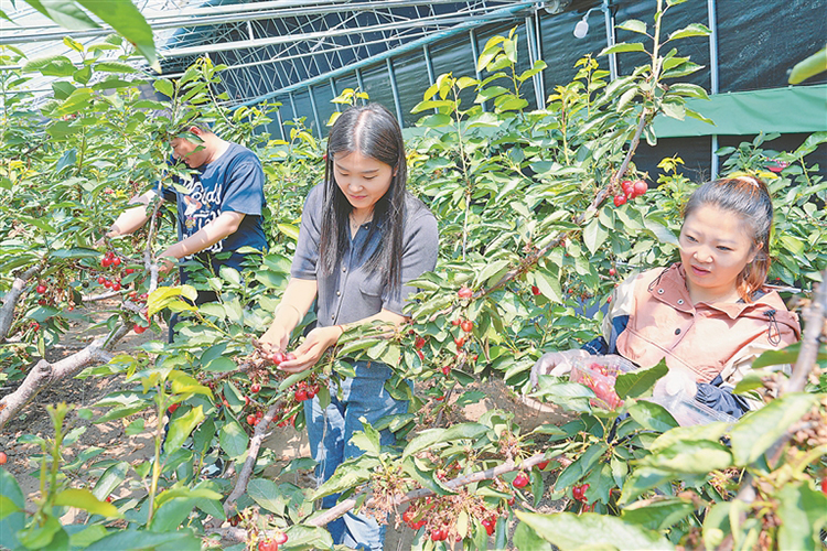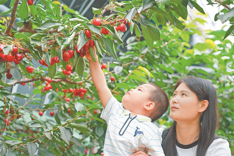 大櫻桃的成熟不僅讓工作人員喜笑顏開,忙著采摘櫻桃供應市場,更吸引了不少游客前來觀光采摘,一幅幅生動景象繪就了夏日“豐收圖”。