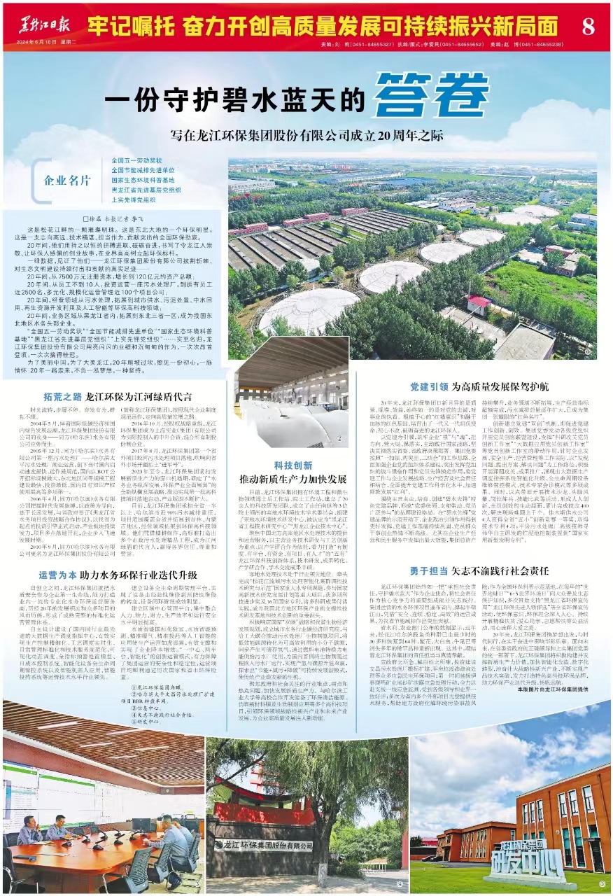 20年間,他們用持之以恒的拼搏進取、砥礪奮進,書寫了令龍江人崇敬、讓環保人感佩的創業故事,在業界高高樹立起環保標桿。