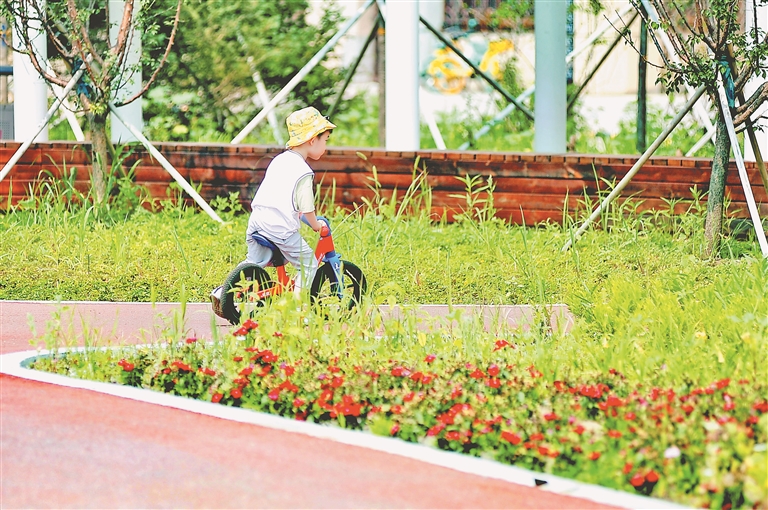 近日,在哈爾濱市南崗區鐵順街西側、西客站西廣場北側、何家溝東側,一處新建的休閑公園投入使用。據了解,這處公園綠地面積有5000多平方米,里面設有塑膠跑道、休閑座椅、健身器材等設施。清晨和傍晚,周邊許多市民都會進園散步、健身、休閑和納涼。本報記者 蘇強攝