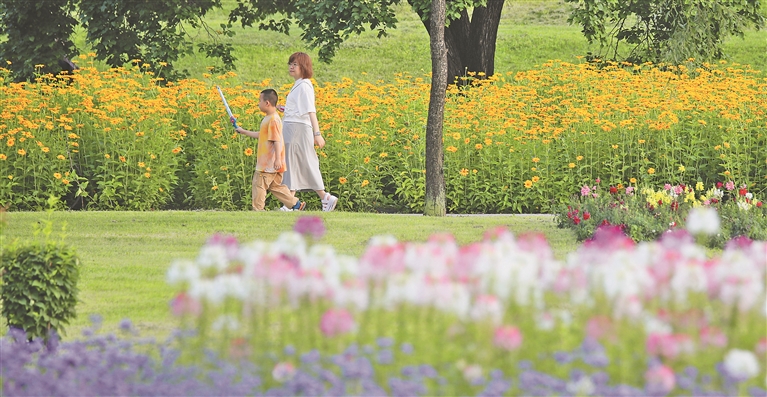 夏日的太陽島風景區,花團錦簇,百余個品系的花卉爭奇斗艷,幽香陣陣,吸引大批游客來此打卡。