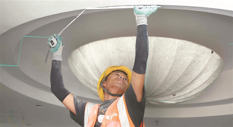 工人正在進行內(nèi)部裝修。本報記者 張澍攝